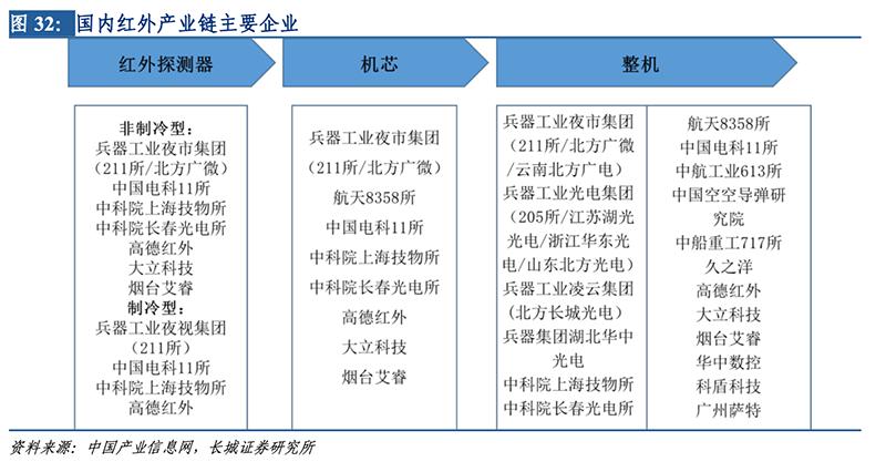 今年2月长城证券发布最新研究报告显示,目前我国的红外热成像市场仍以军用红外应用为主导,包括中国电子科技集团、中国航空工业集团和中国航天科技集团等军工企业仍占据着红外市场较大的份额。