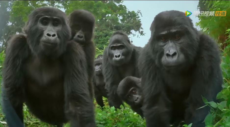 三五成群的壮硕大猩猩舔着大厚嘴唇子来打量你;