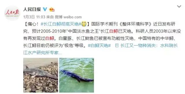 由于水质的破坏和轮船的增多,在2003年以来,就没有再发现过白鲟,遗憾的是,最终在长江失去了踪影。