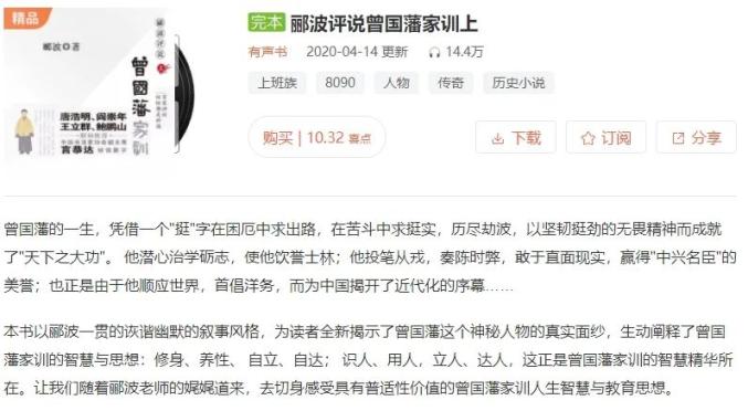 原标题:《【文静读书】夜听《郦波评说曾国藩家训》》