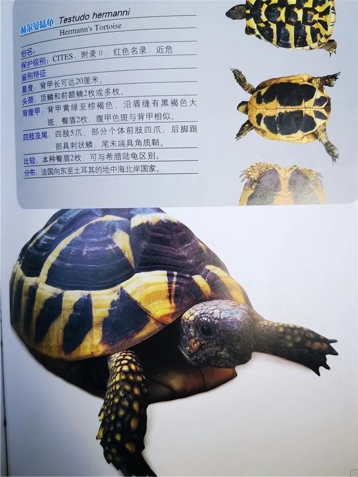 这只是四爪陆龟,是我国一级保护动物,野外基本没有了,比较珍稀。这个大的是赫尔曼陆龟,相当于我国二级保护动物。