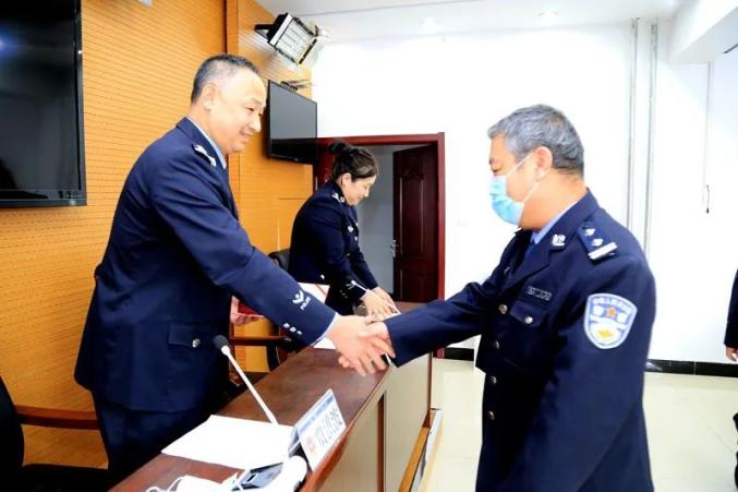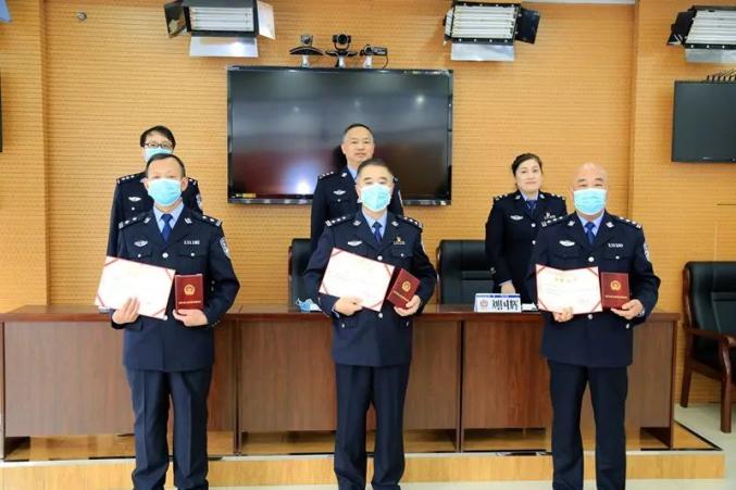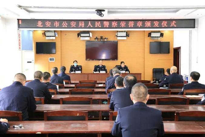 4月21日,北安市公安局举行人民警察在职荣誉章、人民警察退休纪念章颁发仪式,20名从警满30年的民警及退休的民警现场获得勋章。