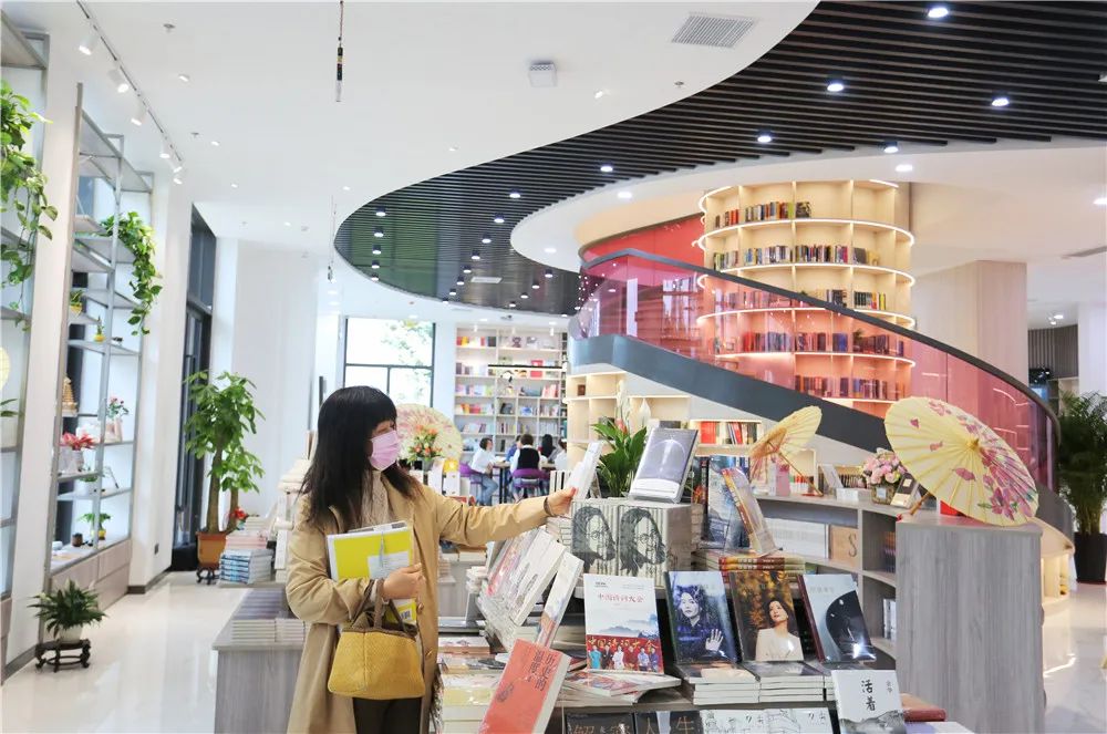 步入紫荆花书院,映入眼帘的是一排排摆满了各品类书籍的自然木色系书架,在暖色的灯光下,透露着一股宁静感;