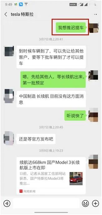 多名车主曾提到,今年1、2月份买Model3标航版之前都问过销售人员,今年特斯拉是否会推出长续航版,但销售均表示短期内不会生产新款车。吴小姐在温州特斯拉直营店的销售曾告诉她,如果出新款也可能在年底,而且“等待太久不划算”。