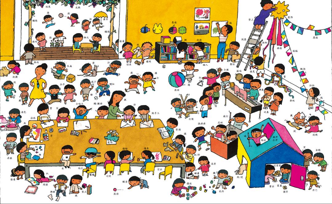 五味太郎创作的场景中,每个词汇与画面人物角色关系、行为之间都具有联动性,小读者可以根据自己的所见,创造自己的故事。所以,这不仅仅是一套语言学习书,更可以激发孩子的读图能力、讲故事的表达能力。