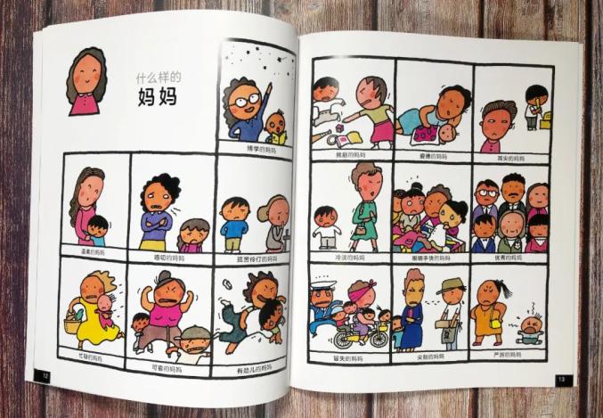 每一个词,还配以幽默且写实的图片,比如耳尖的妈妈在偷听你打电话、有劲儿的妈妈在用力打你屁股、眼明手快的妈妈在抢购……