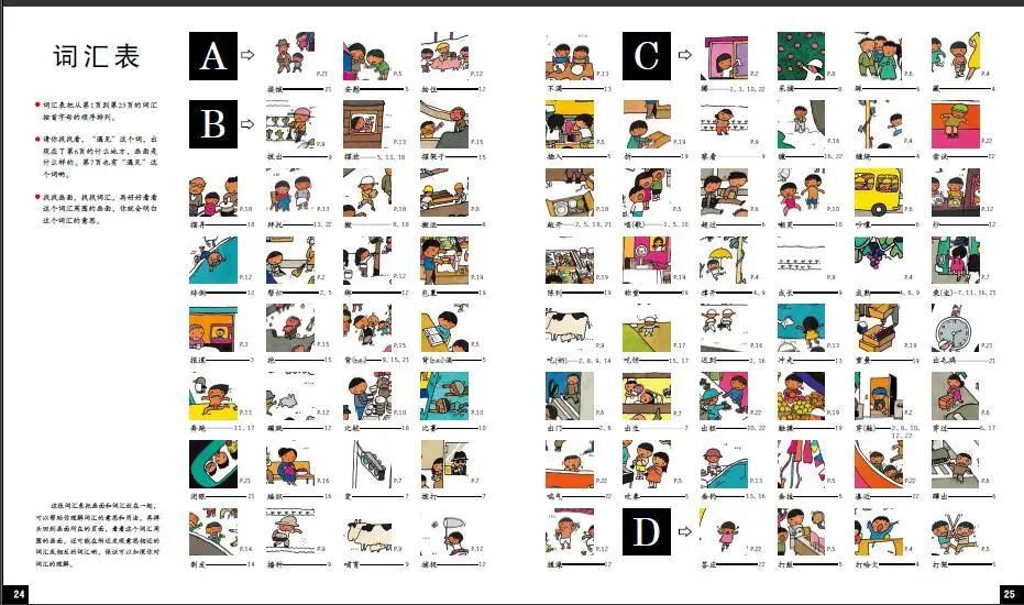 词汇表将书中出现过的词汇统一整理出来,并标注出词汇出现的页数,还提示同一词汇在其他页面出现。
