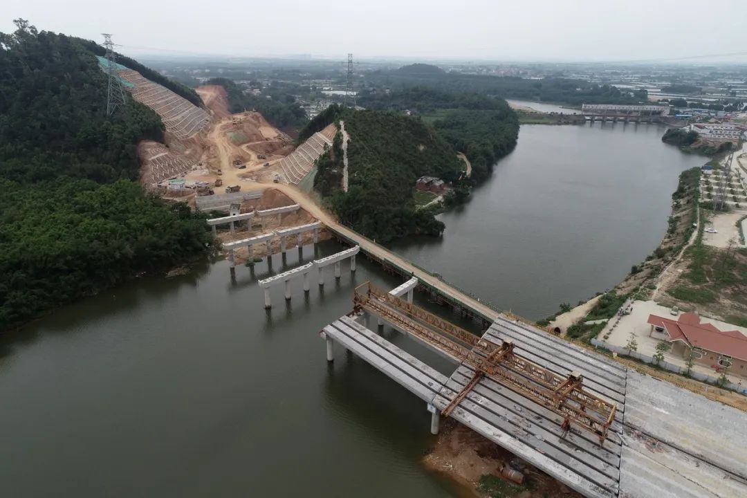 正开展箱梁架设、边坡加固、