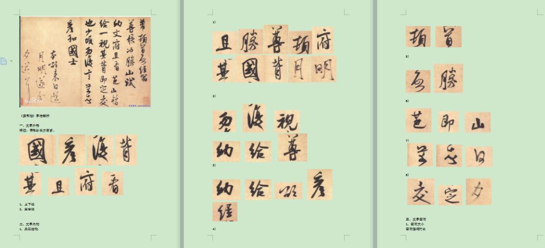 2、将《祭侄文稿》形式语言分析形成文字,进行总结。