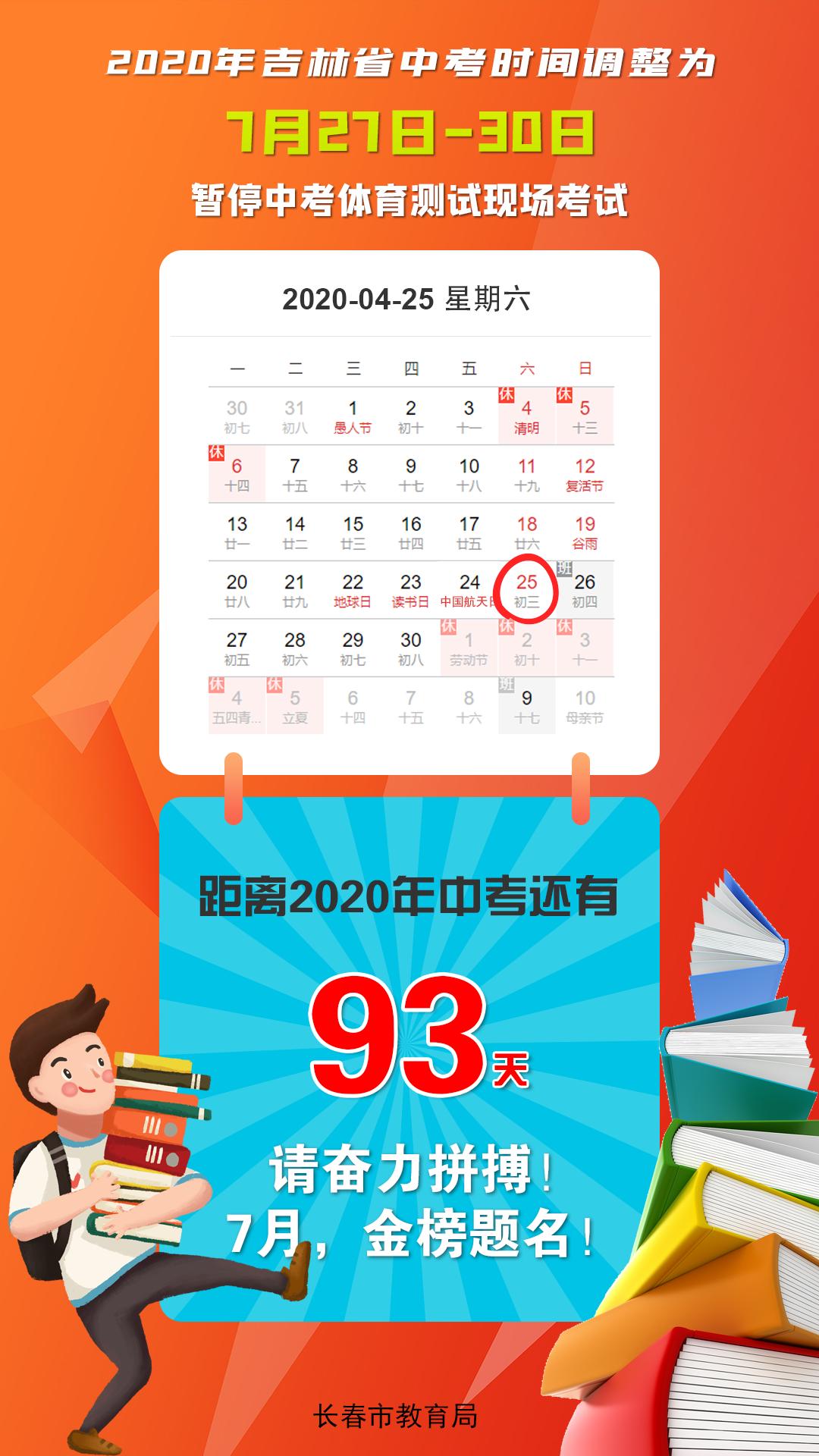 吉林省中考时间调整为7月27日-30日,暂停中考体育测试现场考试