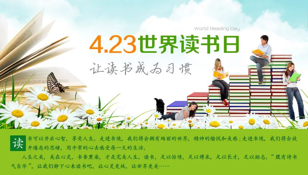 世界读书日全称为世界图书与版权日,又称“世界图书日”。最初的创意来自于国际出版商协会。1995年11月15日正式确定每年4月23日为“世界图书与版权日”。