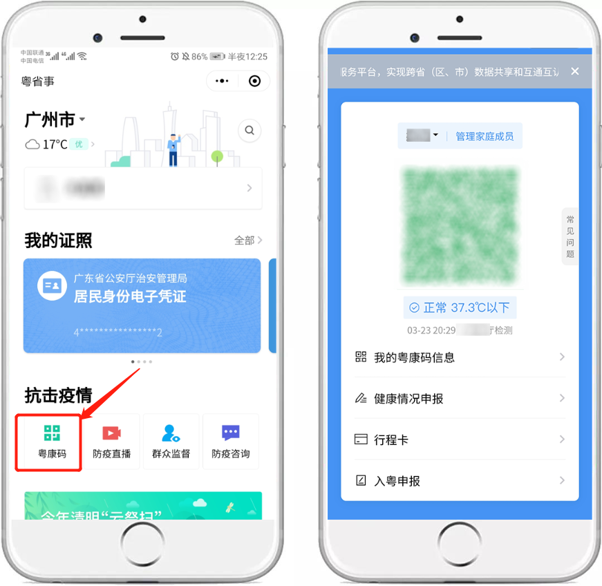 微信搜索“粤省事”小程序,在首页从“粤康码”服务入口进入。