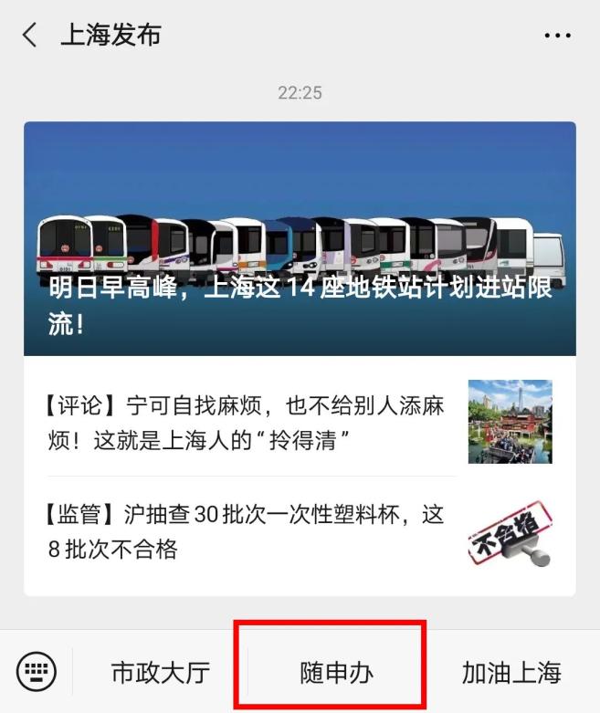1、关注上海发布公众号,在“上海发布”菜单栏点击“随申办”微信小程序,或打开“随申办”App、“随申办”支付宝小程序。