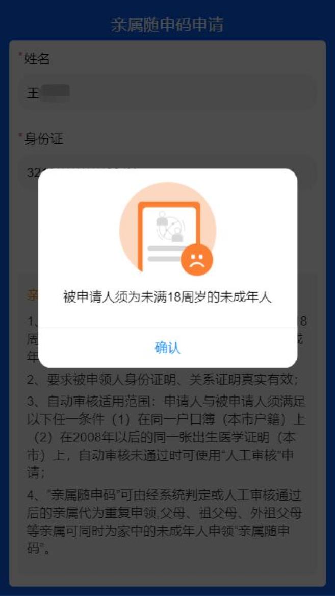 问:我在申请亲属码的时候自动审核失败了,怎么办?