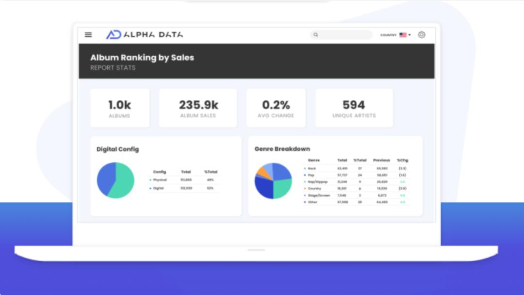 Alpha Data因其每日更新的排行榜和强大的数据功能而被音乐行业广泛使用。其新网站称,该平台分析了来自50多家合作提供商每日50亿次的播放量,并提供所有音乐付费交易最详细的报告。除了更名之外,Alpha Data还对其每日报告服务进行了升级。