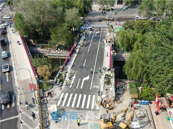 近日,“56岁”的济南南门桥东桥开启整修加固工作。与普通整修不同的是,该桥南北两侧的步道也将打通,环城公园和泉城广场将“一站直达”,行人无需再爬梯至地面与机动车“抢道”。据济南市城乡交通运输局城市道路建设处四级调研员厉建川介绍,该整修项目是济南2020年打通瓶颈路的重点项目之一,地上部分将于4月27日凌晨6点通车,地下步道部分计划于5月22日完工。