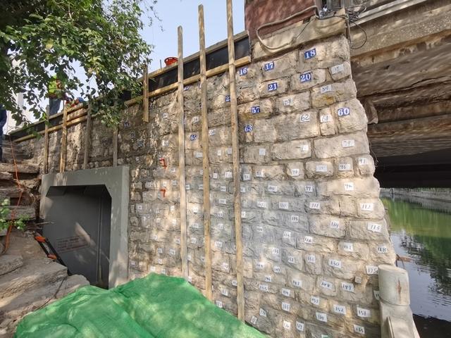 据施工单位负责人介绍,他们在每一块石头都做了数字标记,就是为了在施工完成后,把每一块石头恢复到此前的位置,彻底恢复原貌,“让旅客看起来还是原汁原味的环形公园、南门桥。”