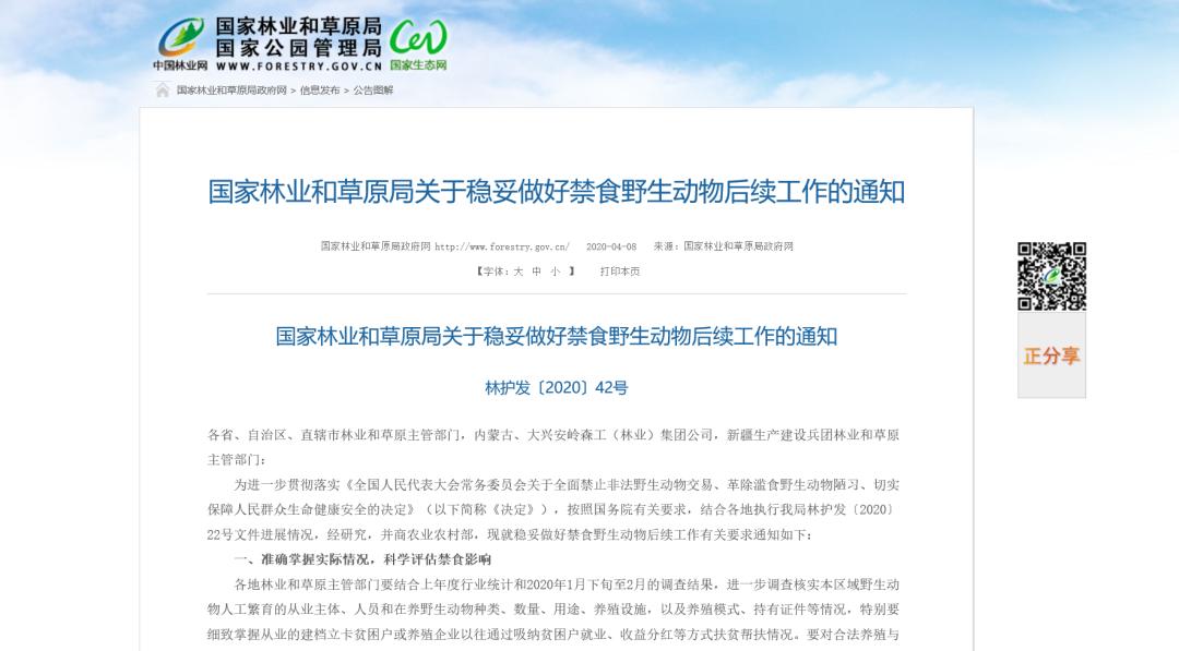 国家林业和草原局也注意到在养野生动物处置问题,《通知》里写得明明白白,对具有药用、观赏价值的在养野生动物,依法依规加快行政许可和信息服务等工作,加速消化存量。