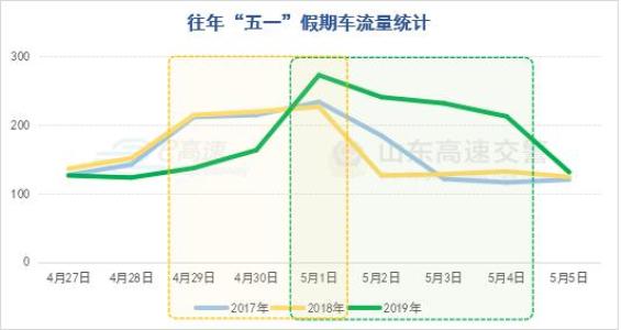 通过对山东省高速公路近几年“五一”假期车流量数据统计, 2017年至2019年车流总量逐年增加,其中2019年“五一”假期调休为4天,车流总量较往年总量有明显增加。山东高速交警建议广大驾驶人根据行程合理安排出行时间,尽量选择错峰出行,避免拥堵。