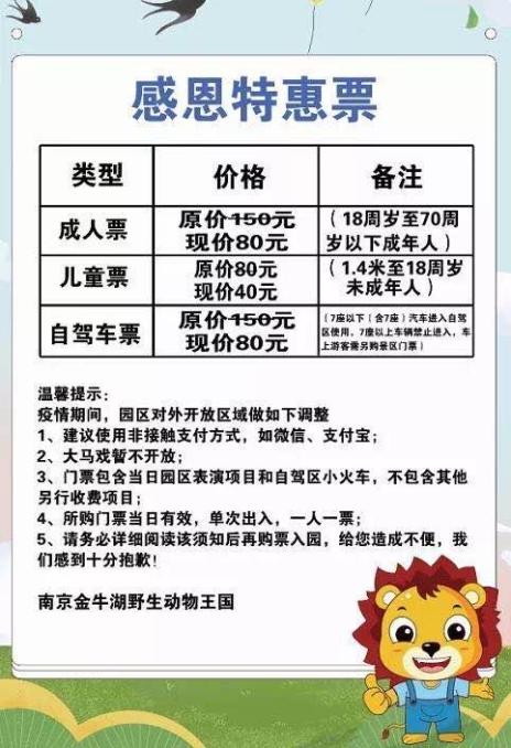景区+动物园联票:原价70元/人,现优惠为50元/人;
