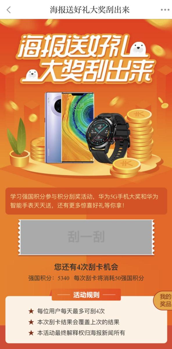 每天有四次积分刮大奖机会,海报新闻客户端活动专属入口在这里