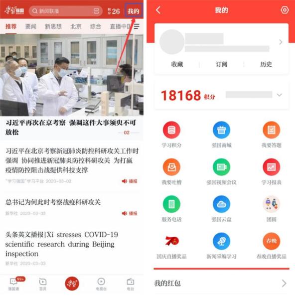 用户在海报新闻客户端 “学习强国”专区,可以进行学习强国积分上报、积分查询和积分兑换,同步积分后,用户进入积分刮奖活动页面,系统会显示用户当天剩余的刮卡次数和当前强国积分。