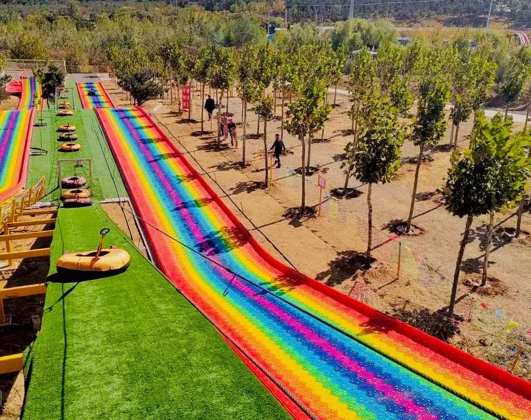 马家庄彩虹滑道、飞跃滑道等网红项目刺激登场,坐着滑垫,屏住呼吸,沿着100多米长的彩虹滑道滑翔而下,感受前所未有的新鲜与刺激。
