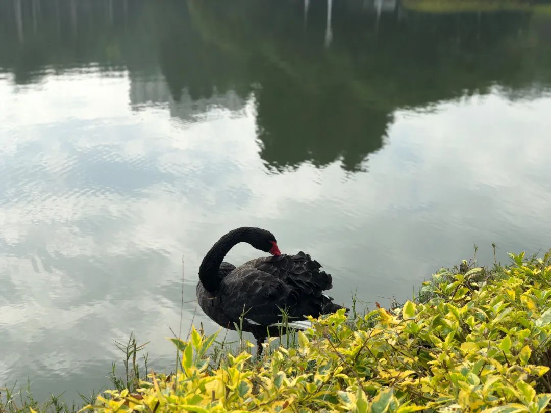 当然也有喜欢安静的游客,这里同样有贴心准备呢!天鹅湖里,白天鹅、黑天鹅和鸭子交错游过,几只游船悠闲划过,与天鹅正面打了个招呼,天鹅倒也淡定,慢吞吞地“飘”走,成双成对。