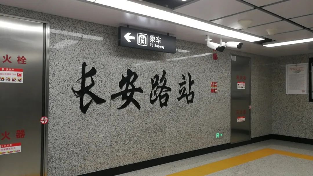 车站位于东西向长安路与南北向滂江街交叉路口北侧,车站主体沿滂江街南北向设置,共设置3个出入口。