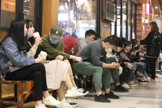 等候就餐的人们排起长队