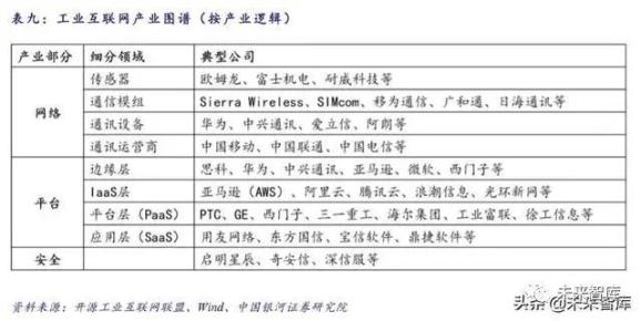 A 股工业互联网代表公司主要有工业富联、用友网络、东方国信、宝信软件和鼎捷软件等。