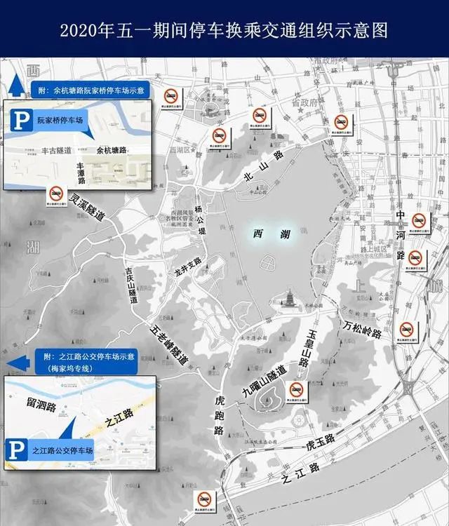 2.虎跑路满觉陇路口、三台山路口禁止机动车西向北左转;