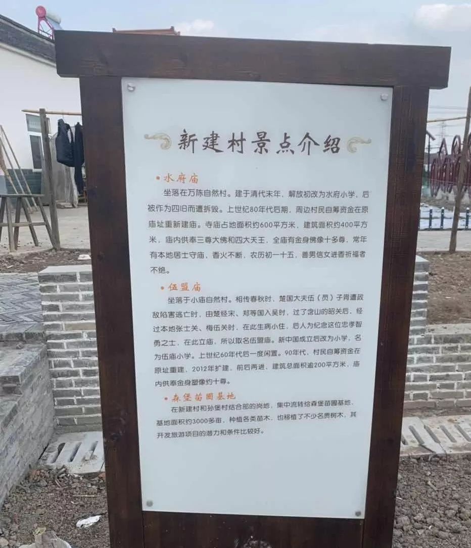 该村历史悠久,村民注重对历史文化资源的保护传承,其中水府庙历经多次重建复修,至今常年有本地居士守庙,香火不断。伍盟庙坐落于小庙自然村,相传,楚国大夫伍子胥遭政敌陷害逃亡过含山的昭关后,在此生病小住,村人为纪念这位忠孝智勇之士,在此立庙,后改为伍庙小学。2012年,村民自筹资金在原址重建庙宇,前后两进,总建筑面积逾200平方米,庙内供奉金身塑像约十尊。