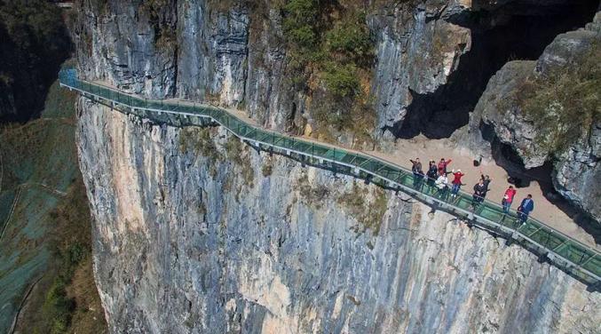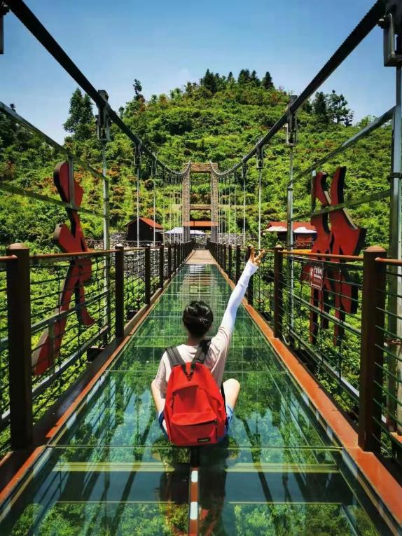 玻璃天桥横架在两座山间,与其他玻璃桥不一样的是,桥面为玻璃的部分大约占据了2/3,桥上眺望山间的景色甚是美丽,另外,山间的风会+行走在玻璃桥上的晃动,会让你情不自禁的手握旁边的栏杆。