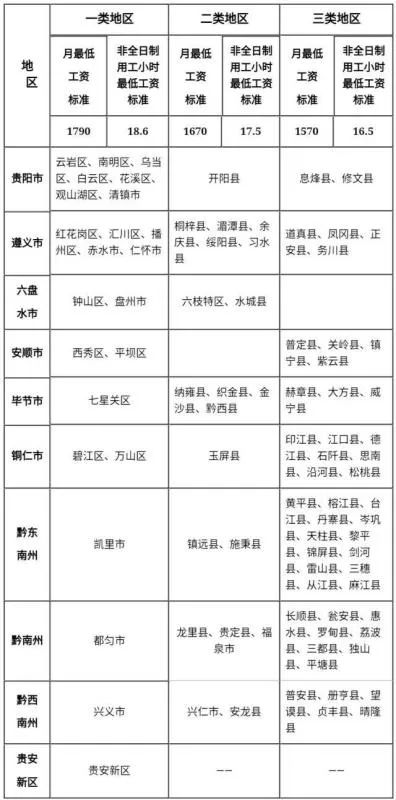 根据贵州省人力资源和社会保障厅公布调整的最低工资标准,贵州最低工资标准如下: