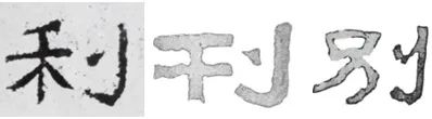 隶书“立刀旁”与篆书写法相对比较接近,如金文“立刀旁”的写法:“刚”“则”“初”“割”