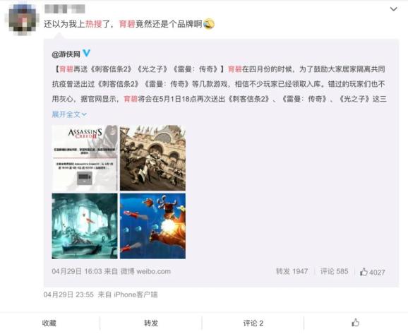 与此同时,育碧直播 P 图所引发的话题性,也在 20:30 左右迅速在微博走红,上了热搜。