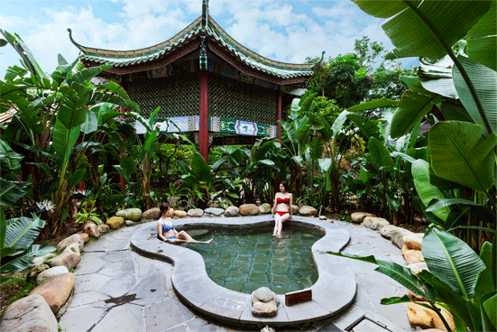 温泉区中尽设亭台楼榭,充满诗情画意,您可以在文化氛围中,尽享沐浴艺术温泉的美妙意境,十分惬意!