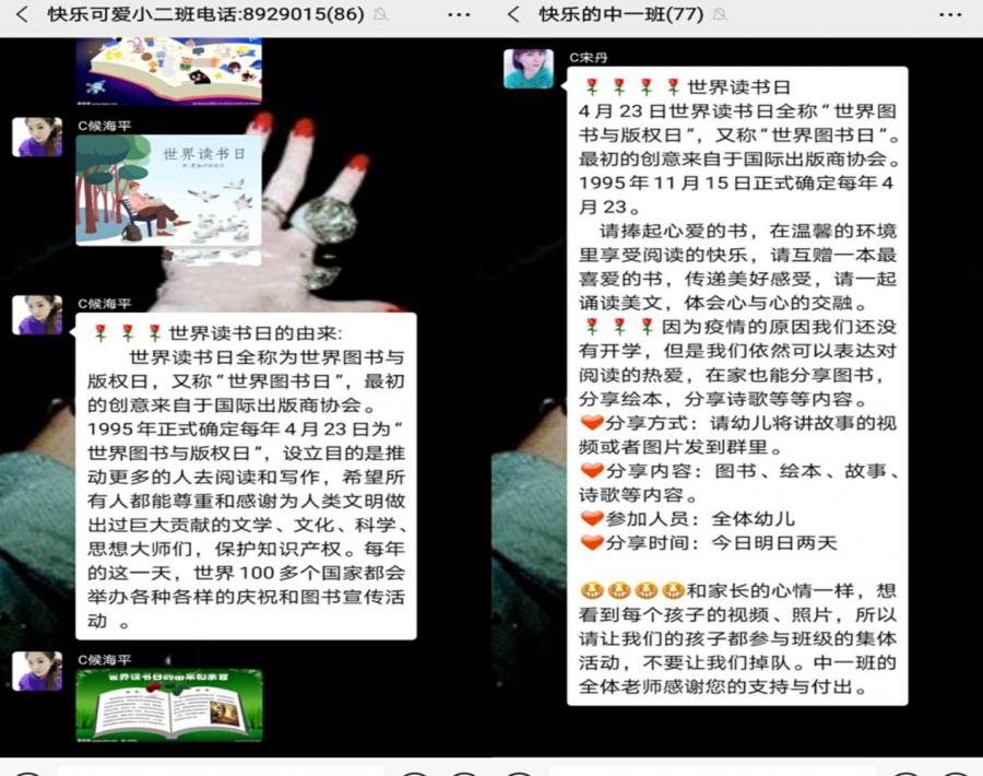 抗击疫情期间,基地通过线上家访、亲子阅读方法推荐等形式指导家长开展亲子阅读。利用4·2国际儿童读书日和4·23世界读书日进行线上宣传教育。通过视频、音频等形式推送亲子阅读栏目鼓励幼儿阅读。线上同唱国歌、录制朗读视频《献给钟南山爷爷》,引导家长和孩子创编儿歌、情景剧、自制绘本等。为了保护幼儿视力,教师们创编防疫儿歌,精心录制经典绘本推荐音频。组织孩子们录制小视频分享自己喜欢的绘本,微信推送《我是朗读者》活动,为每一个家庭提供展示阅读成果的平台。