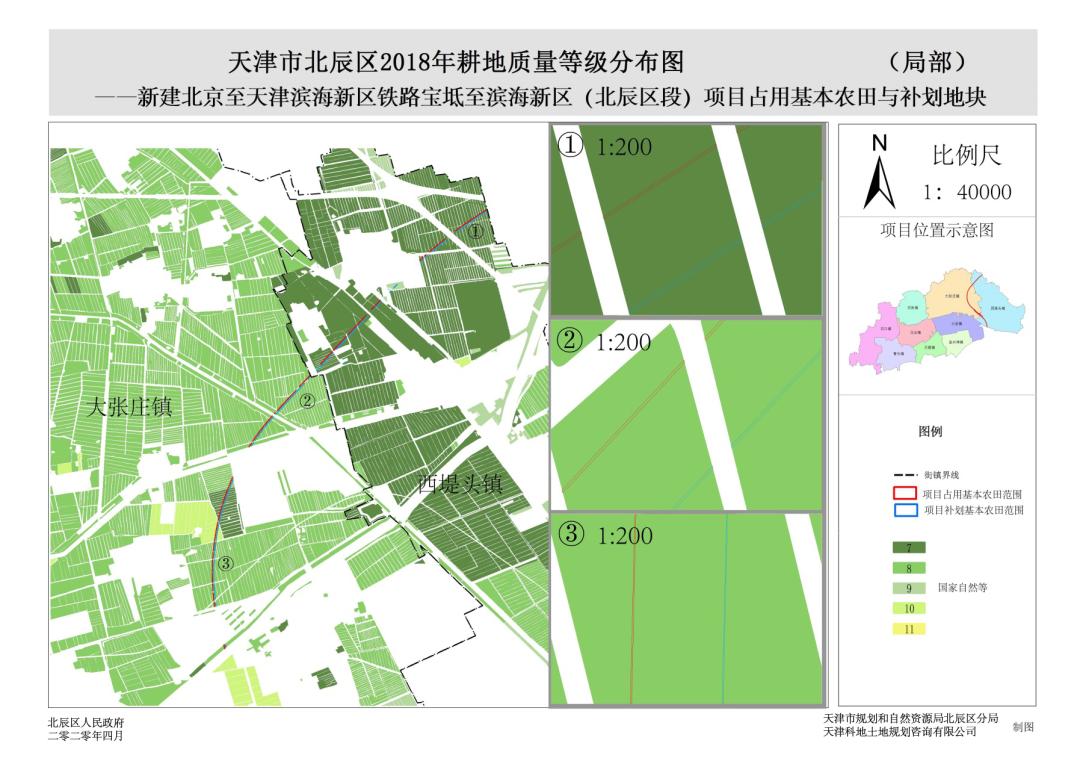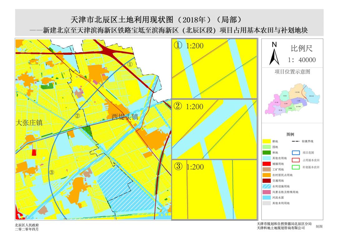 《北辰区土地利用总体规划(2015-2020年)》于2018年3月获批,将本项目纳入重点建设项目清单,并在规划中落实交通用地位置。由于设计方案做出修改,导致部分项目用地不符合规划管控要求,且涉及占压永久基本农田。按照《天津市土地利用总体规划实施管理办法》(津国土房发〔2018〕4号)、《自然资源部关于做好占用永久基本农田重大建设项目用地预审的通知》(自然资规〔2018〕3号)、《自然资源部 农业农村部关于加强和改进永久基本农田保护工作的通知》(自然资规〔2019〕1号)等文件要求,编制规划局部调整方案暨永久基本农田补划方案。