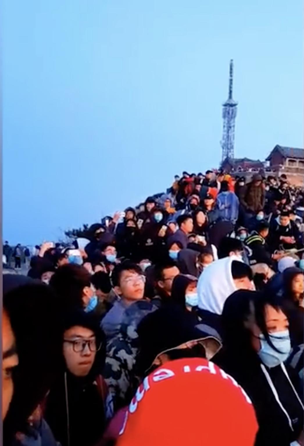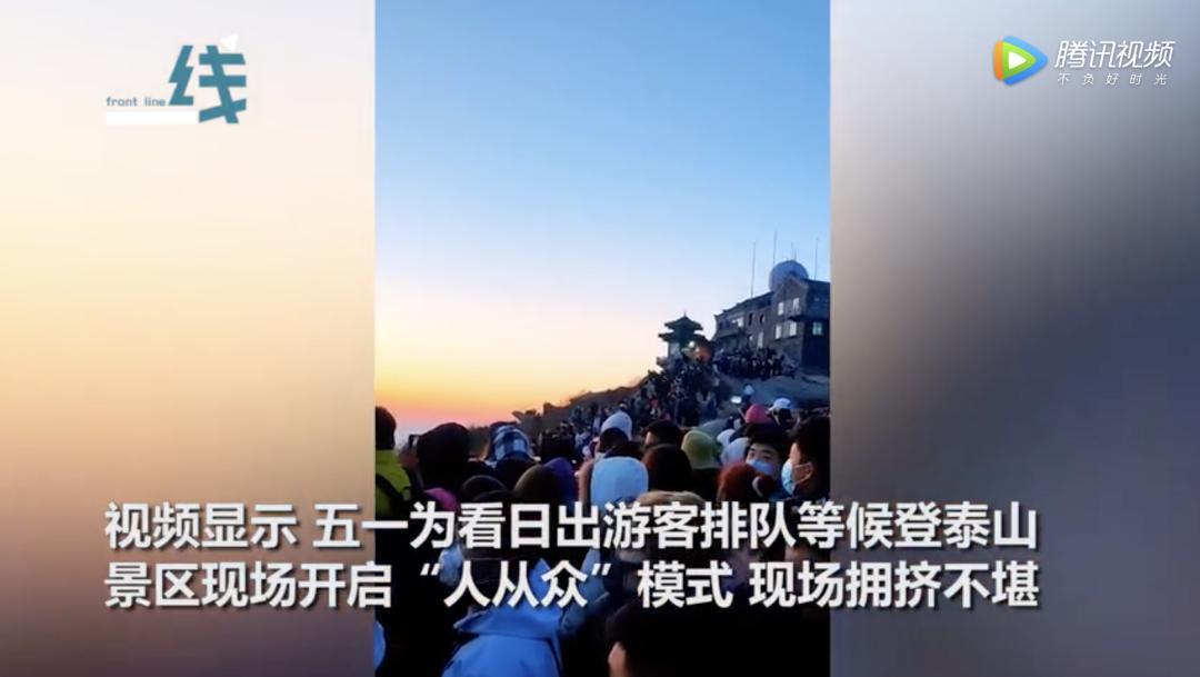 但视频显示,五一为看日出游客排队等候登泰山,景区现场开启“人从众”模式,拥挤不堪。