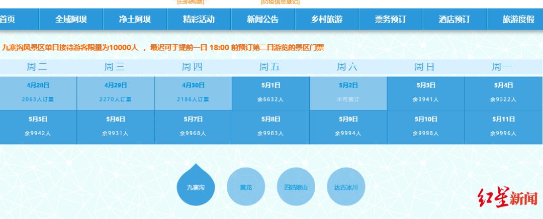 5月1日上午9时,九寨沟景区5月2日的网络预售门票已售罄。这意味着今年“五一”期间,九寨沟景区将在5月2日迎来客流高峰。
