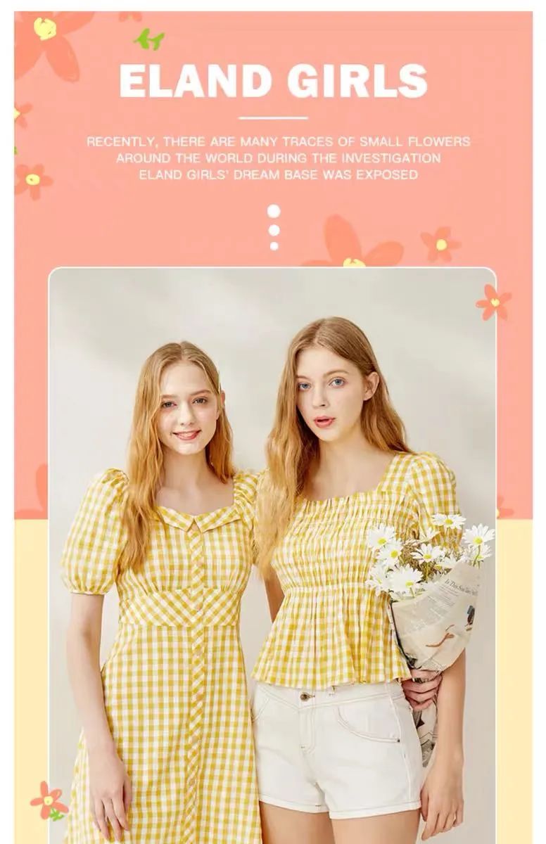 产品1:2020春夏新款复古法式方领清新格子泡泡袖上衣女