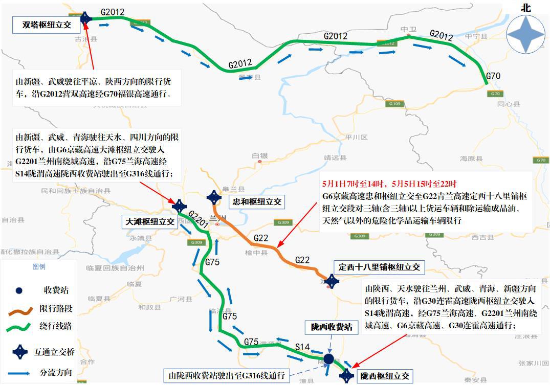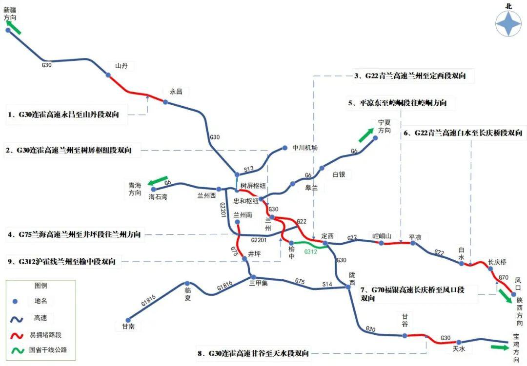 五一劳动节假期,甘肃省高速公路网出程、返程车流量较大路段预计主要集中在环兰高速公路及景区附近收费站路段。