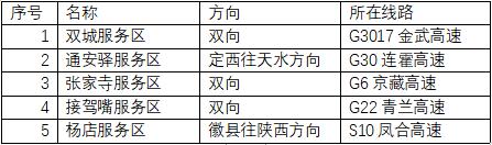 G30连霍高速(河东片区):通安驿服务区、甘泉服务区、百花服务区、鸳鸯服务区