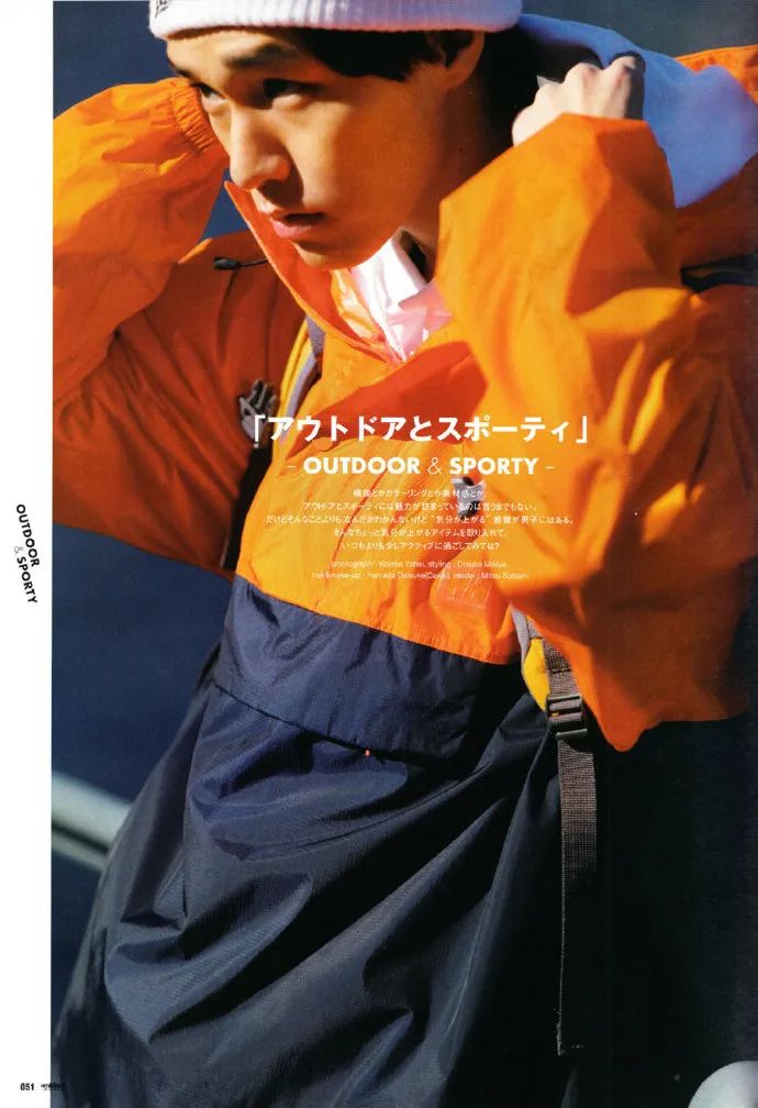 机能感、运动感单品。毕竟最初 city boy 们在杂志中的出现常常伴随着某项运动,但他们又不会穿成真正的专业运动员,秘籍就是选择亮一些的颜色,并搭配冷帽、高领卫衣等时髦单品: