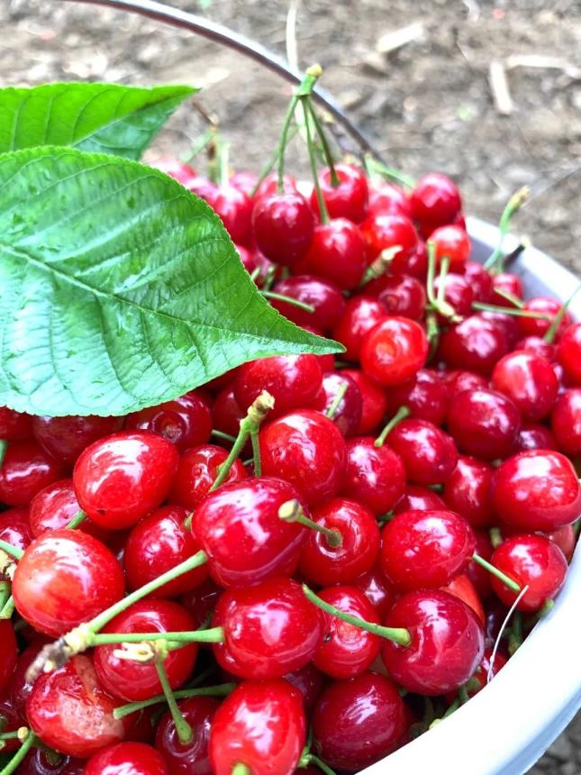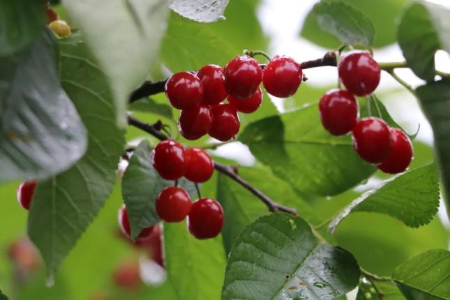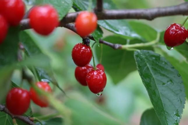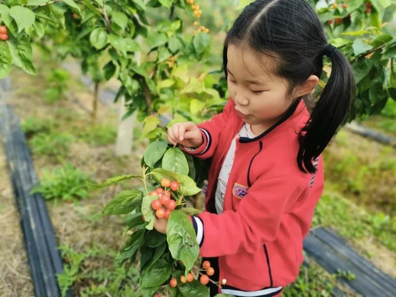 目前这里的大部分樱桃都可以采摘了,今年挂果的樱桃是南方紫珍珠,是樱桃当中的优质品种,外表色泽鲜艳,晶莹美丽,口感鲜美,品质极上。这里的樱桃不仅果实比较饱满,颜色也很漂亮!在采摘樱桃的同时,还能欣赏一下美丽的乡村风景!