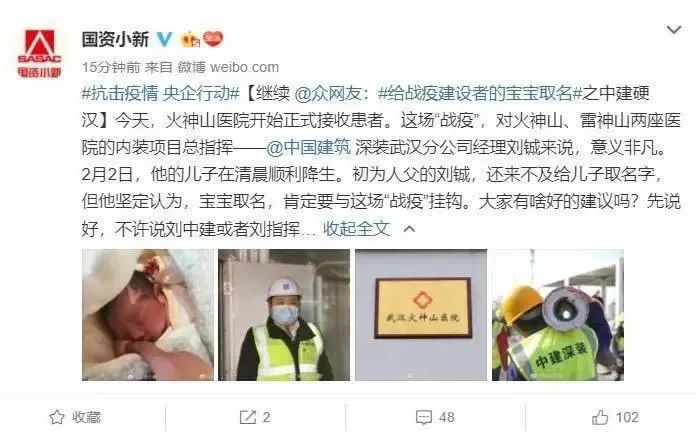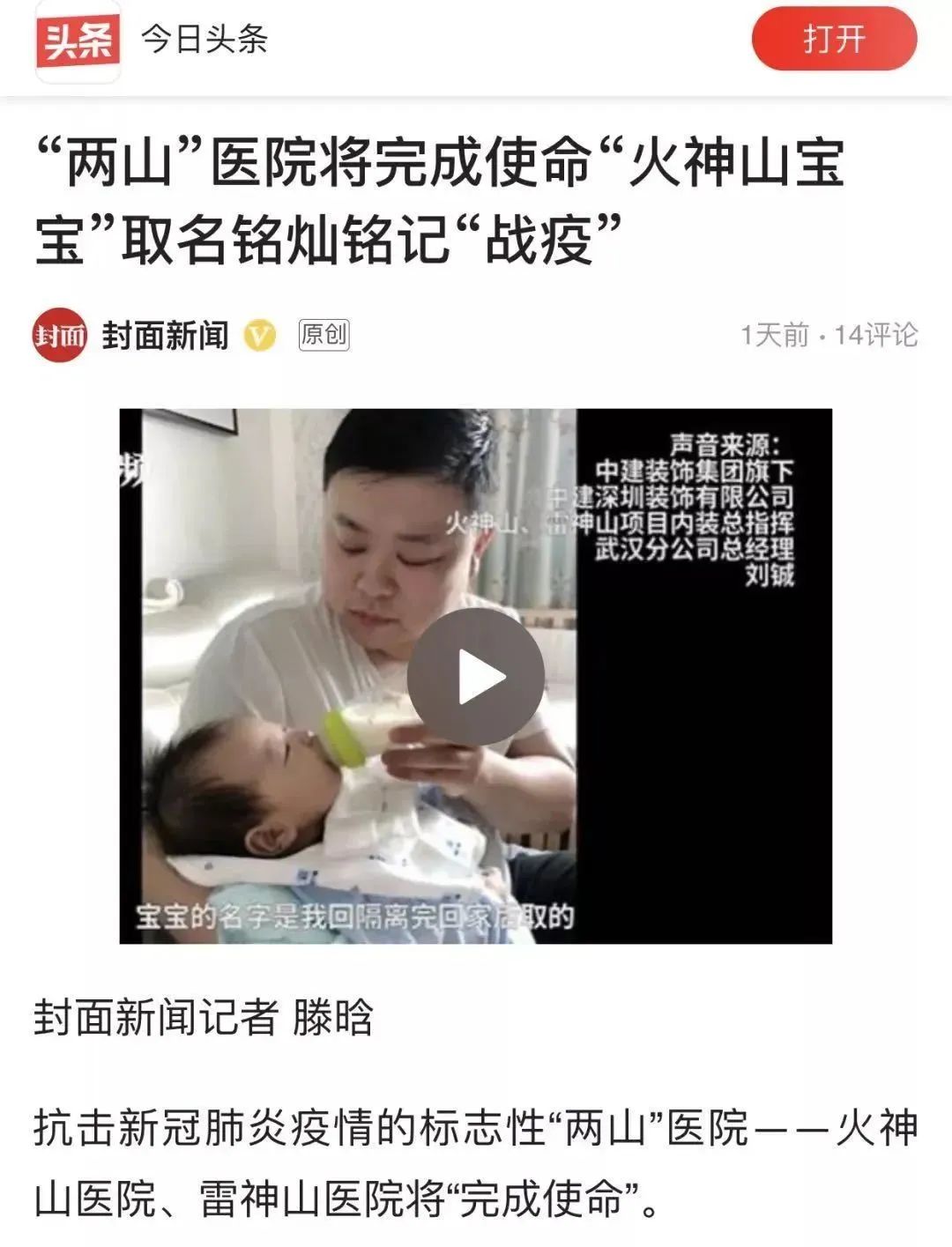 刘汉升、刘捷灿、刘庚安、刘火雷、刘神山、刘建筑......看到这些名字你可能已经懵了,这些都是啥?这里,不得不说“建筑硬汉”刘铖与他的“火神山宝宝”。2月2日,注定成为刘铖终生铭记的日子。作为一名父亲,他的儿子在这一天来到了人间。也是这一天,他参建的武汉火神山医院完工交付。