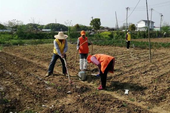 防疫春耕两不误。洛社镇徐贵桥社区发挥“聚心暖心徐贵桥”志愿品牌效应,组织志愿者为农场耕地、捂有机肥料、播种、上农家肥。