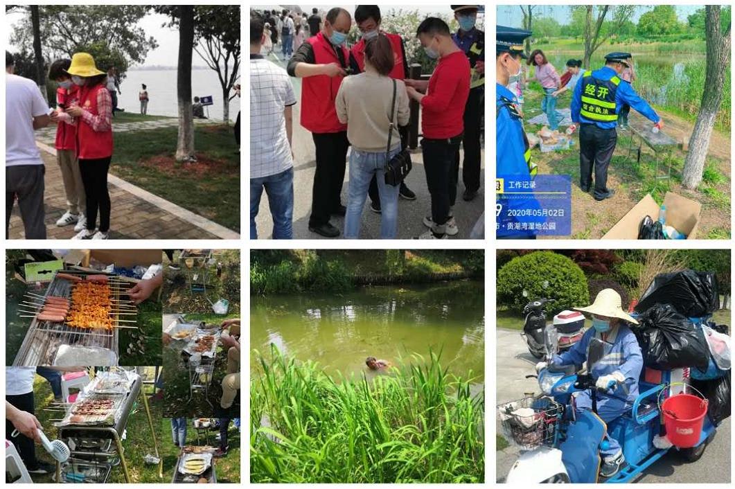 小长假期间,辖区瑞景公司工作人员全力以赴创造安全有序的游园环境,配合景区工作人员,对游客不文明行为、无证商贩进行巡查劝阻,防控志愿者抽查游客“锡康码”、测温,向游客不间断进行防疫安全宣传。